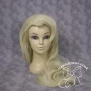Approximately 26 inch platinum blonde side part wig with widows peak.